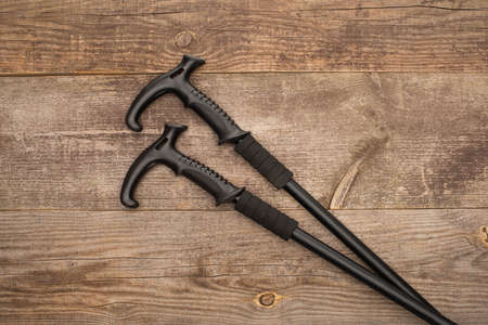 Usable devices for hiking. Isolated photo of climbing equipment. Part of carabiner lying on the white and grey colored surface.