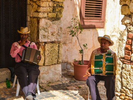 Nuoro, Sardinia, Italy - August 26 2018: Musicians with the accordion in the parade of traditional costumes of Sardinia on the occasion of the Feast of the Redeemer of the August 26, 2018 in Nuoro, Sardinia.