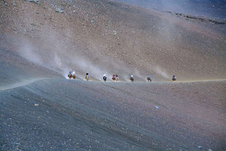 MAUI, USA - JUNE 13 Unidentified people horseback riding on June 13, 2011 in Sliding sands trail, Haleakala national park, Maui island, Hawaii