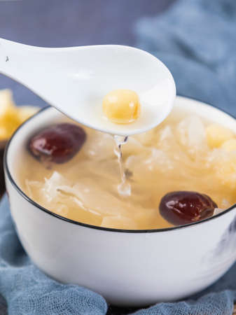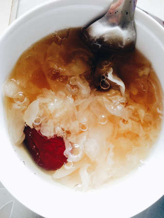 A bowl of sweet and refreshing white fungus syrup, a Cantonese dessert