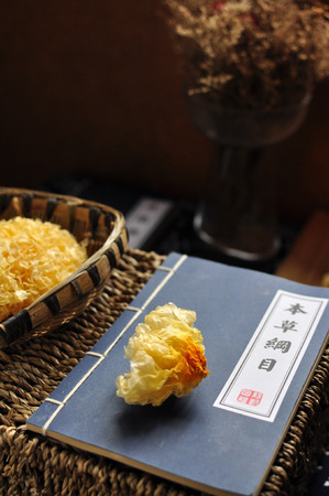 Asian Herbal medicine Dried White Snow Fungus Tremella fuciformis Isolated on white background