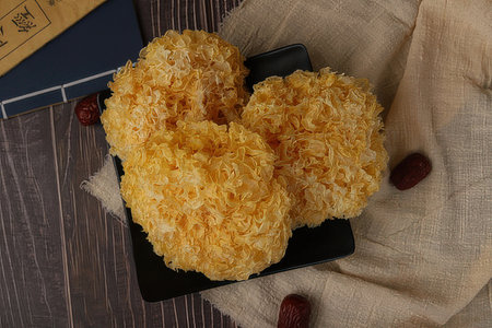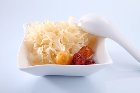 Tremella fuciformis in a bowl with peach gum food ingredients