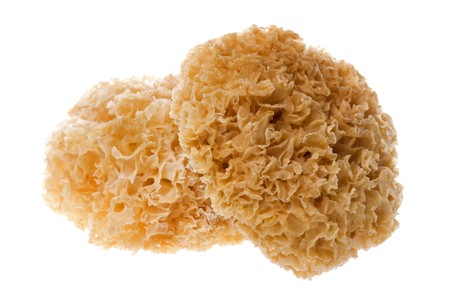 Sparassis crispa, known as cauliflower mushroom. It is an edible mushroom, well-known medicinal mushroom. Cauliflower fungus growing in a forest