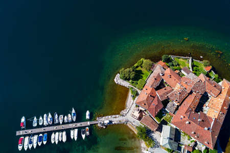 Aerial view of Menaggio village. Menaggio is a picturesque and traditional village, located on the western shore of Lake Como, Italy