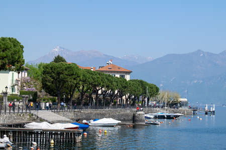 The town of Tremezzina, on Lake Como, photographed on a spring day.