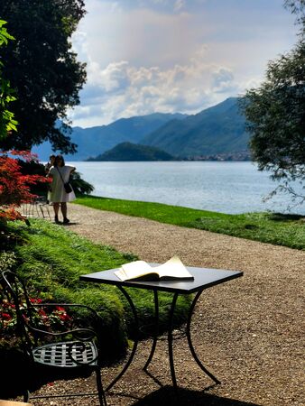 Botanical garden of villa Melzi and lake Como