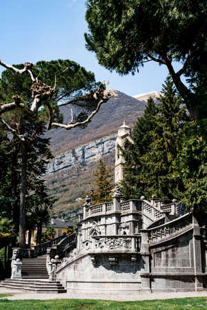 Stone staircase in the Teresio Olivelli park. Lake Como, Italy