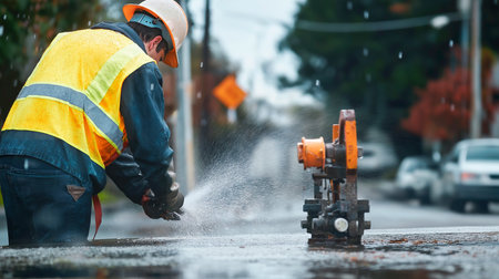 a man in a construction uniform and a helmet rides a road construction machine