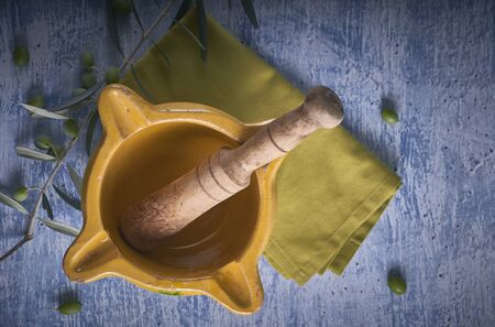 Yellow mortar to make a sauce called allioli, typical of Catalonia. Spain