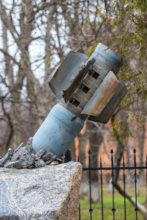 KERCH, RUSSIA - June 30, 2019: Black unbroken shell of the great patriotic war. Kerch, Crimea