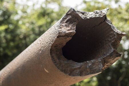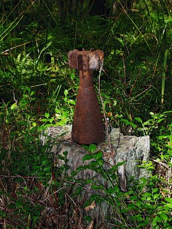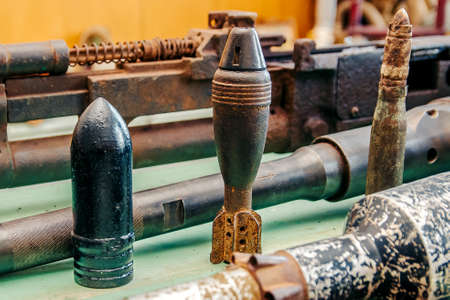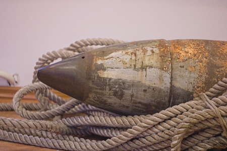 Close up of an old rusty unexploded artillery projectile shell found on the italian french Alps and belonging to the World War II.