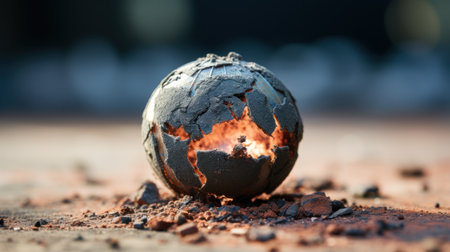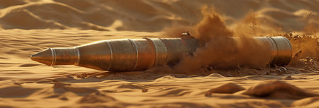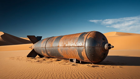 AI Generated. Old rusted bomb on sandy ground in a desert environment