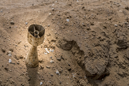 a homemade bomb on the ground. Clearance of terrorist bombs