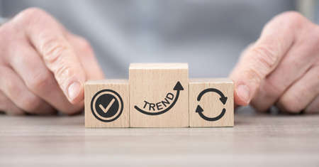 Wooden blocks with symbol of trends concept