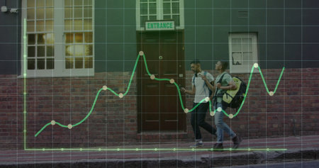 Image of financial data processing over modern office building. global business and finance concept digitally generated image.