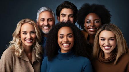 Diverse group of people of different ages and cultures smiling together. Concept Cultural Diversity, Smiling Faces, Multigenerational Portrait, Happiness Across Cultures, Unity in Diversity
