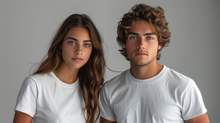 Casual Portrait of Young Man and Woman in White Shirts in Studio Setting