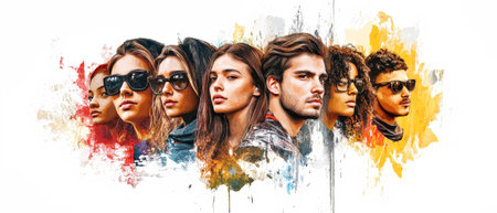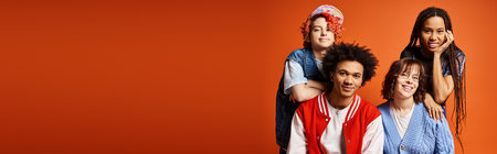 A vibrant portrait capturing youthful energy and diversity, featuring four friends with unique styles against a colorful urban backdrop. Generated AI brings this scene to life with a modern touch