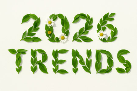2026 trends made of green leaves and flowers, eco-friendly concept, background, AI generated