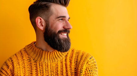portrait of smiling man in yellow sweater and beard