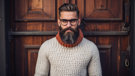 Perfect style Side view of young bearded man in eyewear looking away while standing outdoors : Generative AI