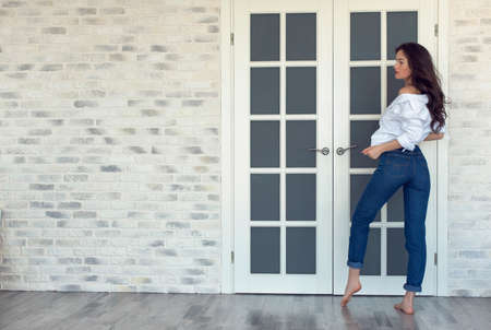 Cute young brunette in a warm home studio