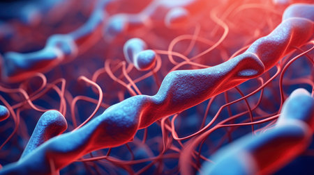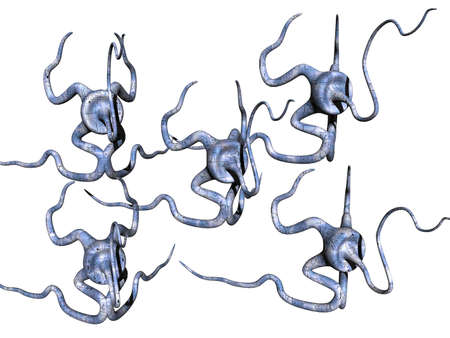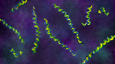 Treponema pallidum, 3D illustration of spiral-shaped bacterium causing syphilis, shown with detailed morphology.