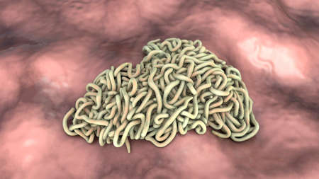 Parasitic worms, 3D illustration. Ascaris lumbricoides, Enterobius vermicularis and other round worms