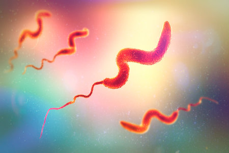 Campylobacter bacteria, C. jejuni, C. fetus, Gram-negative S-shaped motile bacteria the causative agent of food-borne infection campylobacteriosis, 3D illustration