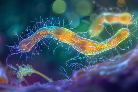 Campylobacter jejuni bacteria 3d render illustration closeup