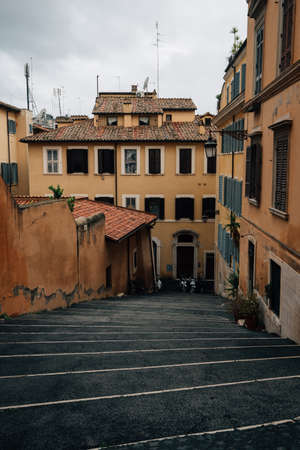 ROME,ITALY - JUNE 17,2011: Streets of Rome. One of popular stairs in old town in Rome.