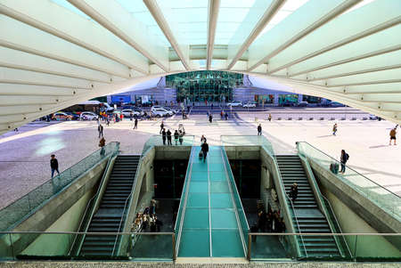 LISBON, PORTUGAL - DECEMBER 14, 2018: Modern architecture at the Oriente Train Station (Gare do Oriente) designed by famous architect Santiago Calatrava, built in 1998