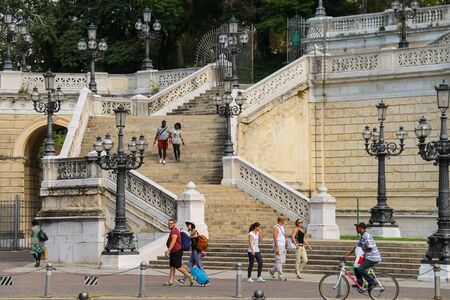 Imposing staircase leading to the basilica and the shrine of Our Lady of Bonaria in Cagliari, Italy
