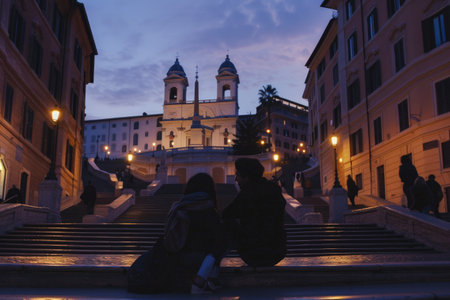 Tourists on Spanish Steps in Rome, Italy