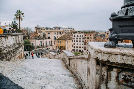 View from the church of Trinita dei Monti at Spanish Steps (Piazza di Spagna). Rome, Italy, 15.03.2015