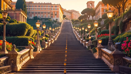 Spanish stairs in uninhabited Rome, one of the most famous stairs in the world