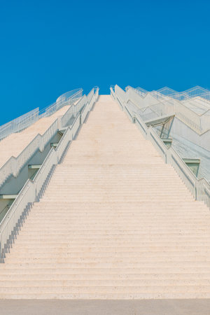 White stairs going up to the Pyramid of Tirana near Skanderbeg Square in Tirana. Albania