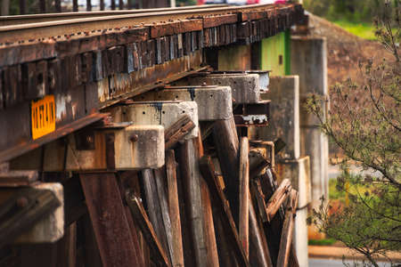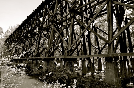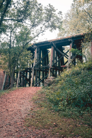 The Old wooden train bridge spans across the landscape