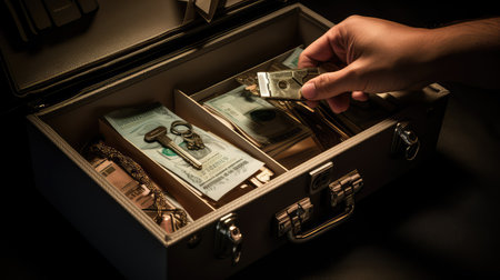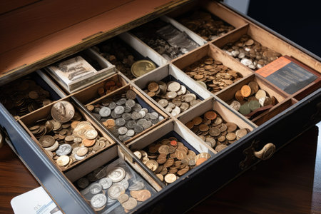 safe deposit box containing collection of rare coins, including golden dollar and half-eagle, created with generative ai