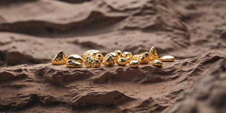 AI Generated. Gold plated stone arrangement on a rough brown background