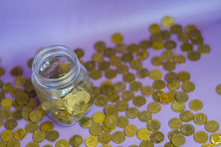 Money Financial Business Growth concept. gold coins drop with nature background.selective focus.