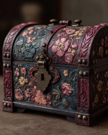 Discover a beautifully crafted vintage chest with intricate floral carvings, perfect for adding a touch of elegance to any space. An ideal storage solution.
