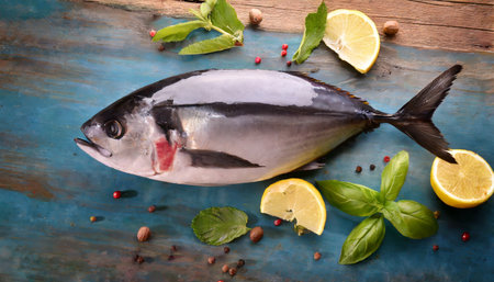 Depicting a tuna , close-up portrait , high quality, high resolution