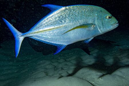 Blue fin trevally (Caranx melampygus) in ocean blue water, Maldives