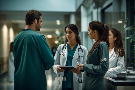 Doctors and nurses working in a healthcare facility to develop treatment protocols. Medical staff engaged in a discussion about healing strategy in a private clinic, healthcare industry teamwork.