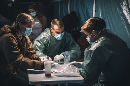 Ensuring the Health of Migrants: Medical Specialists in Protective Masks Attend to Individuals in a