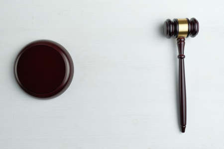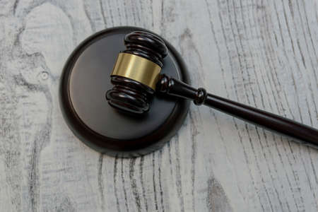 Wooden gavel on white table. Fish bidding, animal auction. Business of auction background.