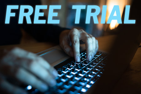 Sign displaying Free Trial. Business showcase Product or service offered for no cost to try and give feedback