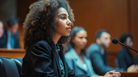 Lawyer speak in court. Attorney and jury in court. Generative AI