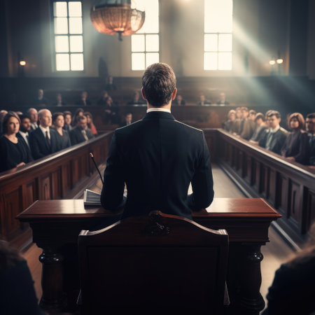 Passionate lawyer defends client with convincing arguments in court., generative AI